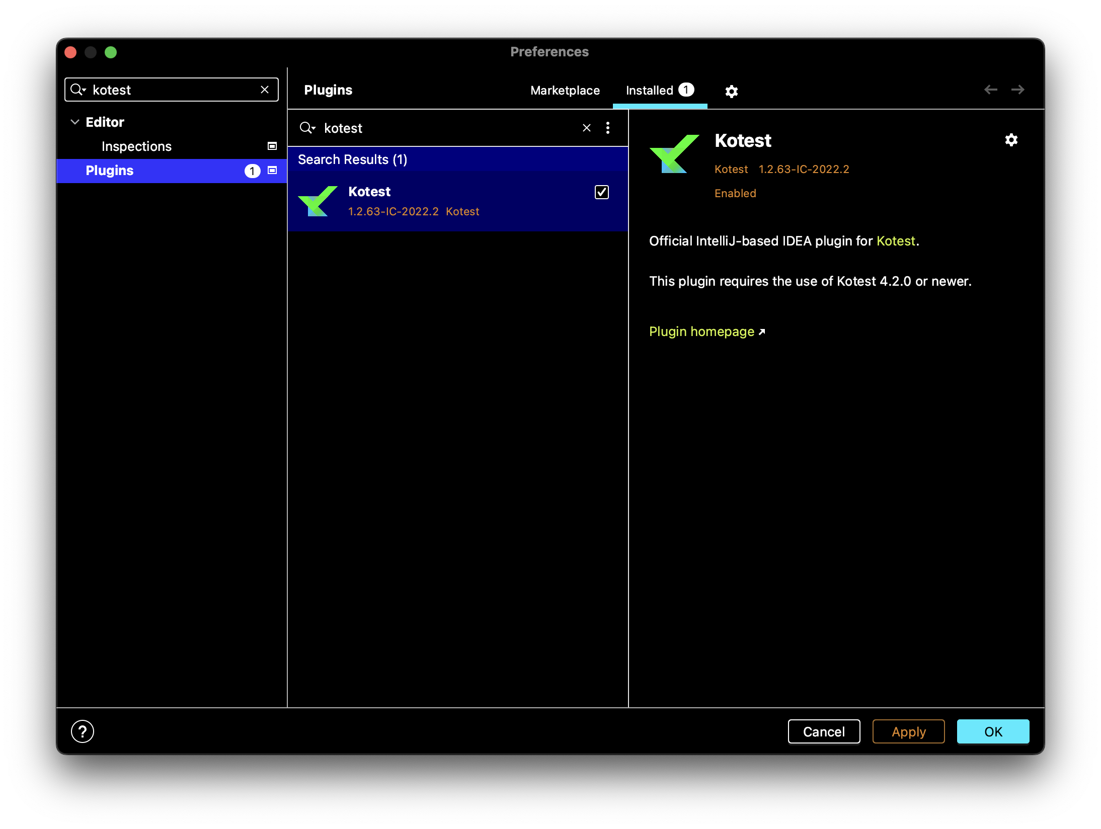 짜잘한 내용으로 kotest 로 작성한 테스트가 intellij 에서 실행버튼을 보이지 않을 수 있다. kotest 로 작성한 테스트를 intellij 에서 실행하기 위해서는 plugin 이 필요하다.